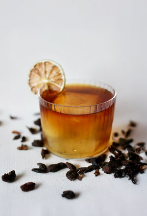 Shaken Cascara tea with homemade Cascara Syrup and a touch of lime
